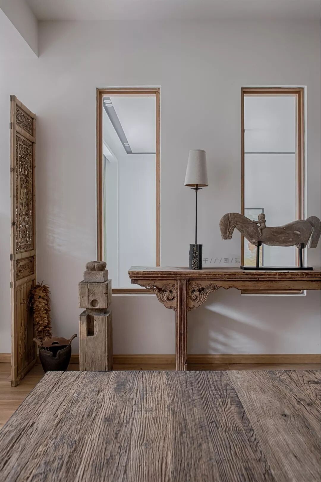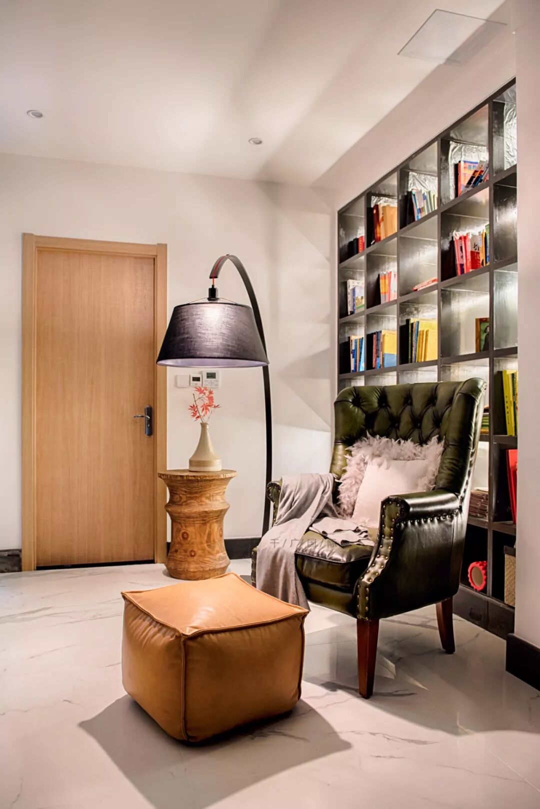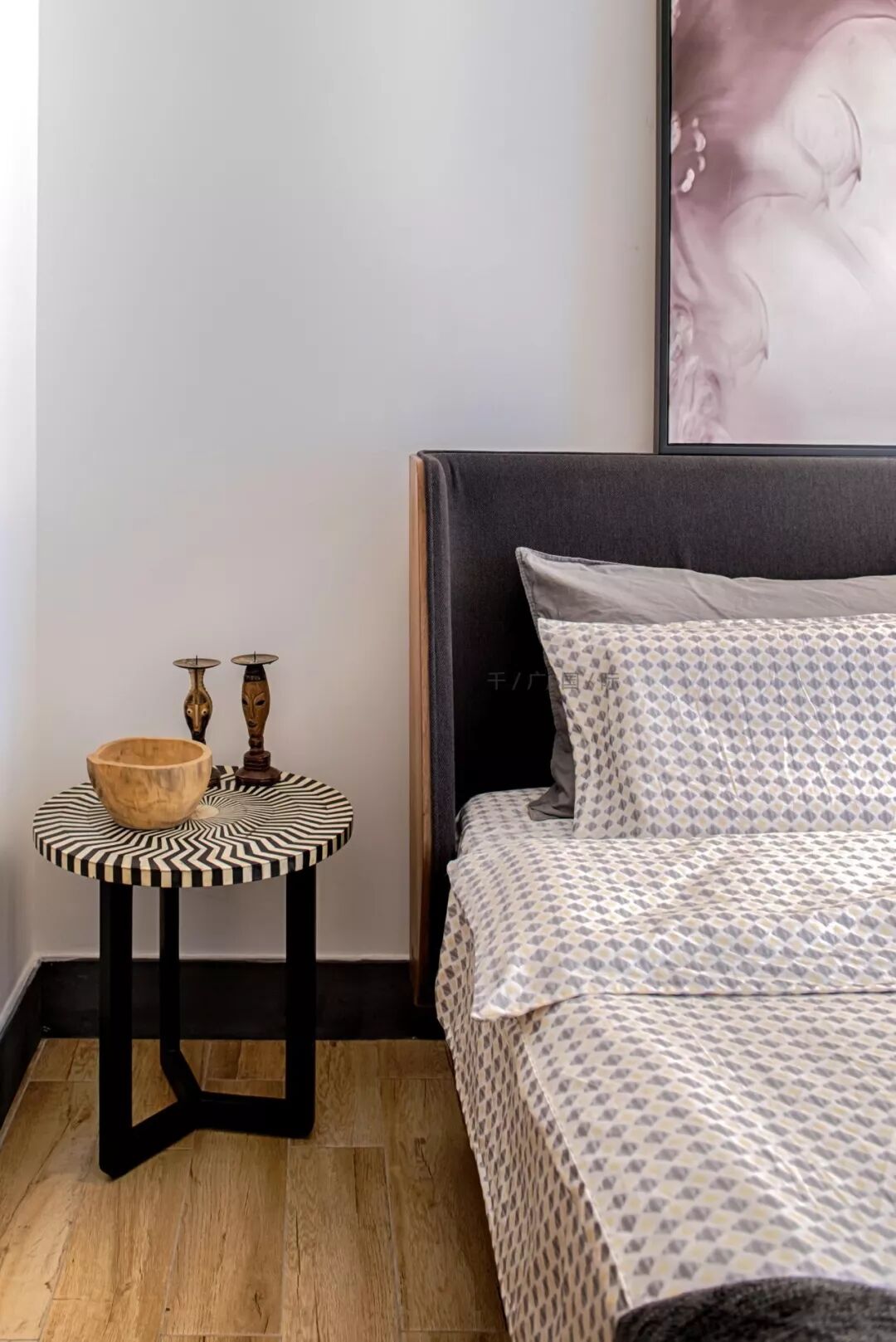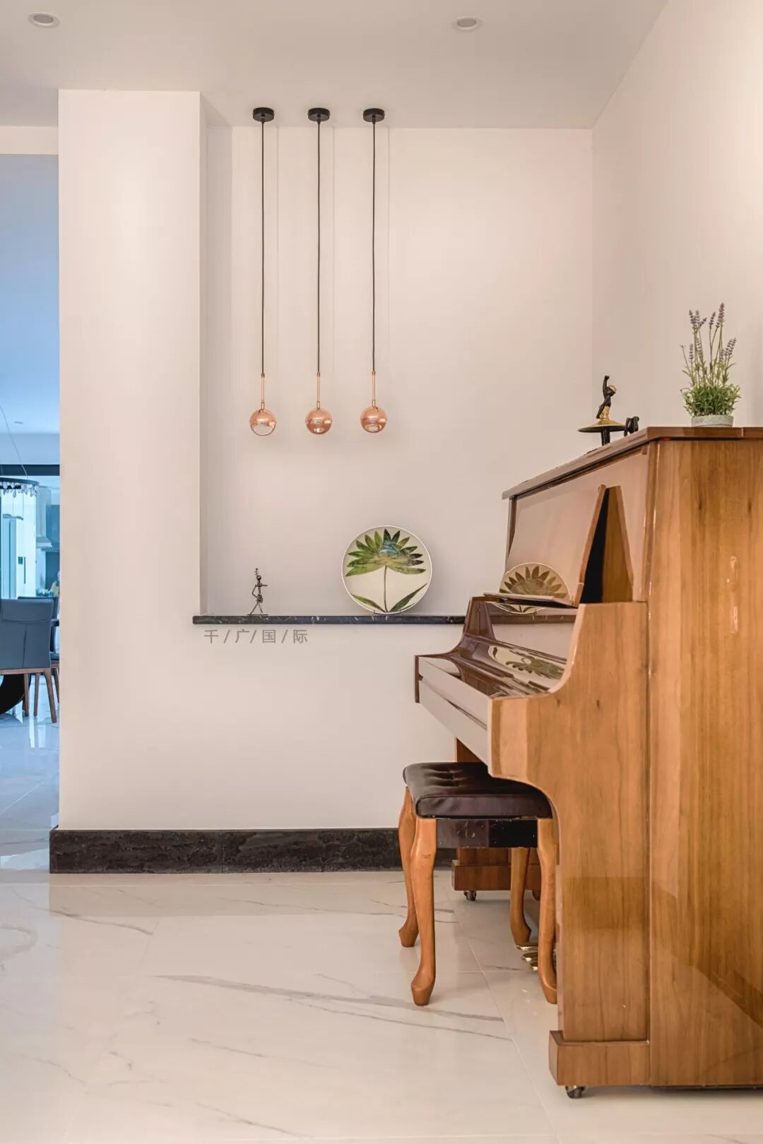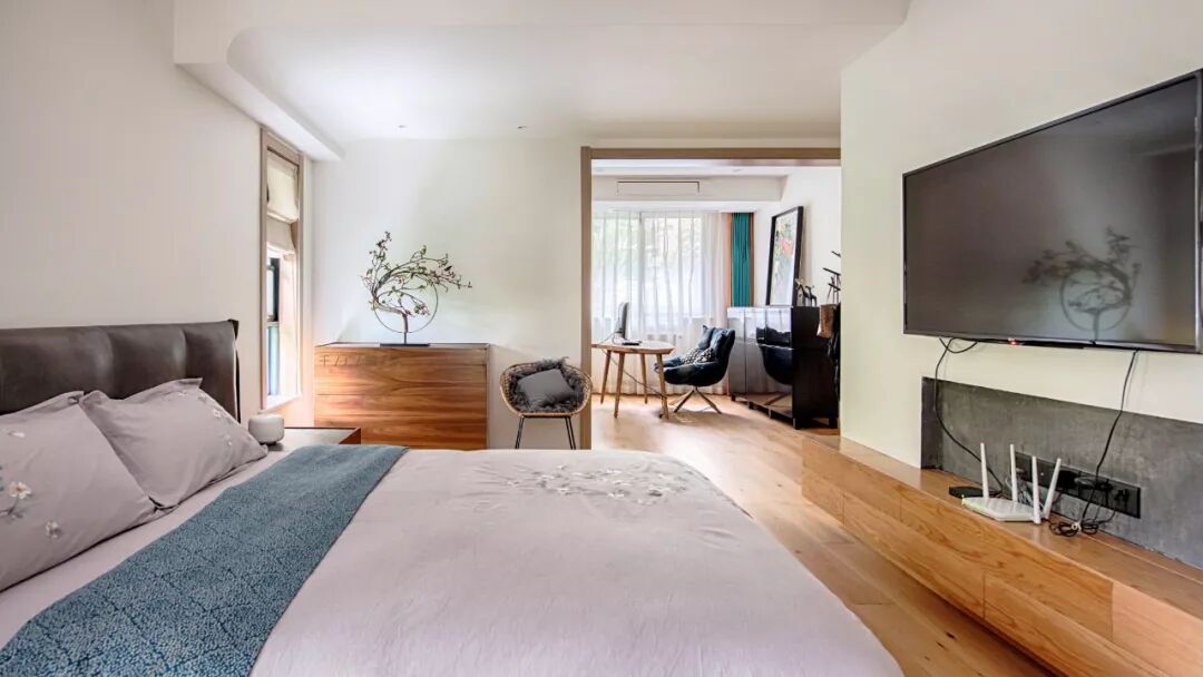 用极简的硬装处理手法,通过软装不着刻意痕迹的装点,打造了有客户个人爱好属性的空间。